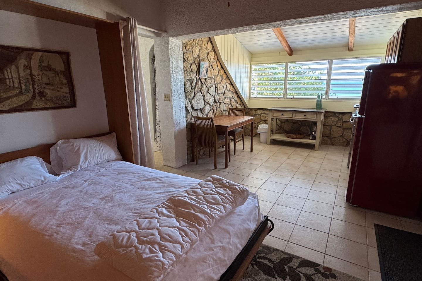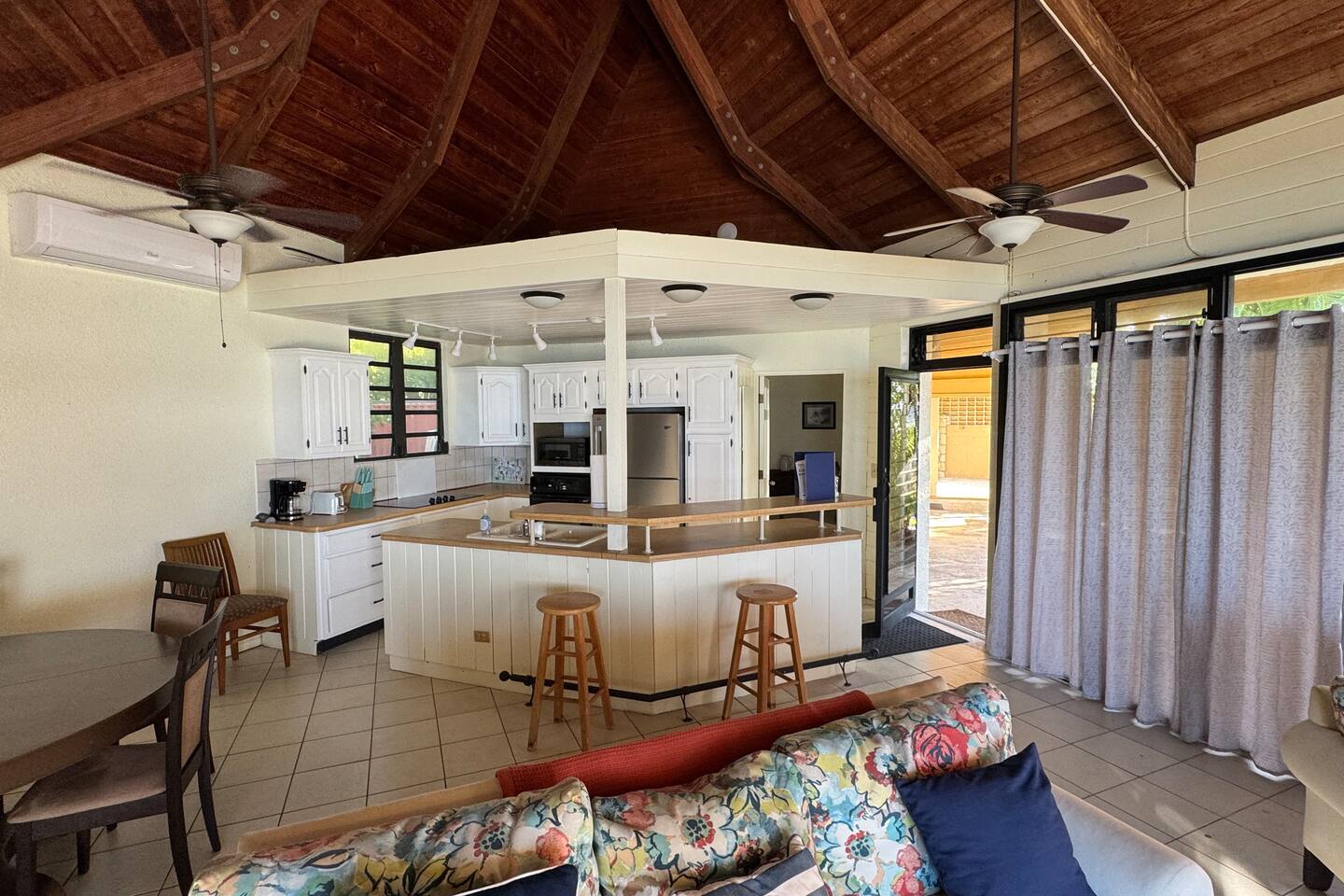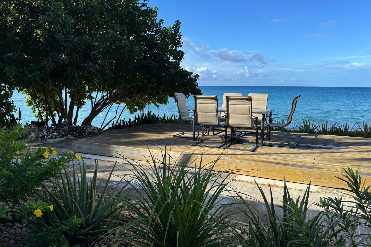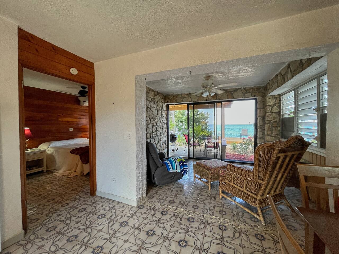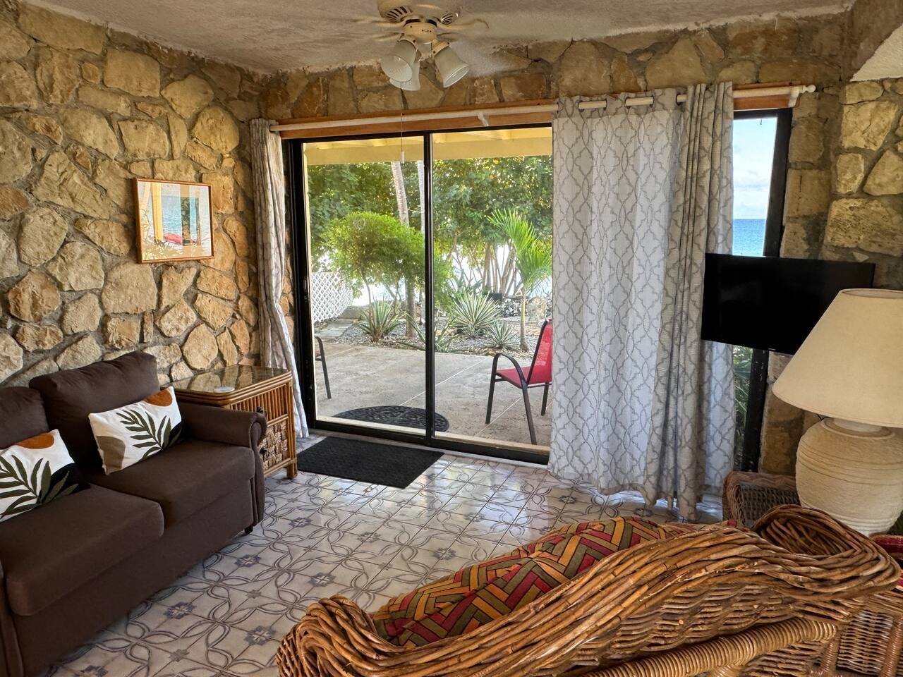 Welcome to our Beachfront Villa—where swimming is easy and stunning sunsets are endless. Perfect for families and friends of all ages, it sits on the sandy West End of St. Croix, just a short walk from historic Frederiksted. Two charming stone houses share a private walled courtyard, steps from the sandy beach. Swim, snorkel, fish, or simply relax on the shaded porch and take in the Caribbean view. Enjoy the laid-back beauty of island life at our Oceanfront Villa.